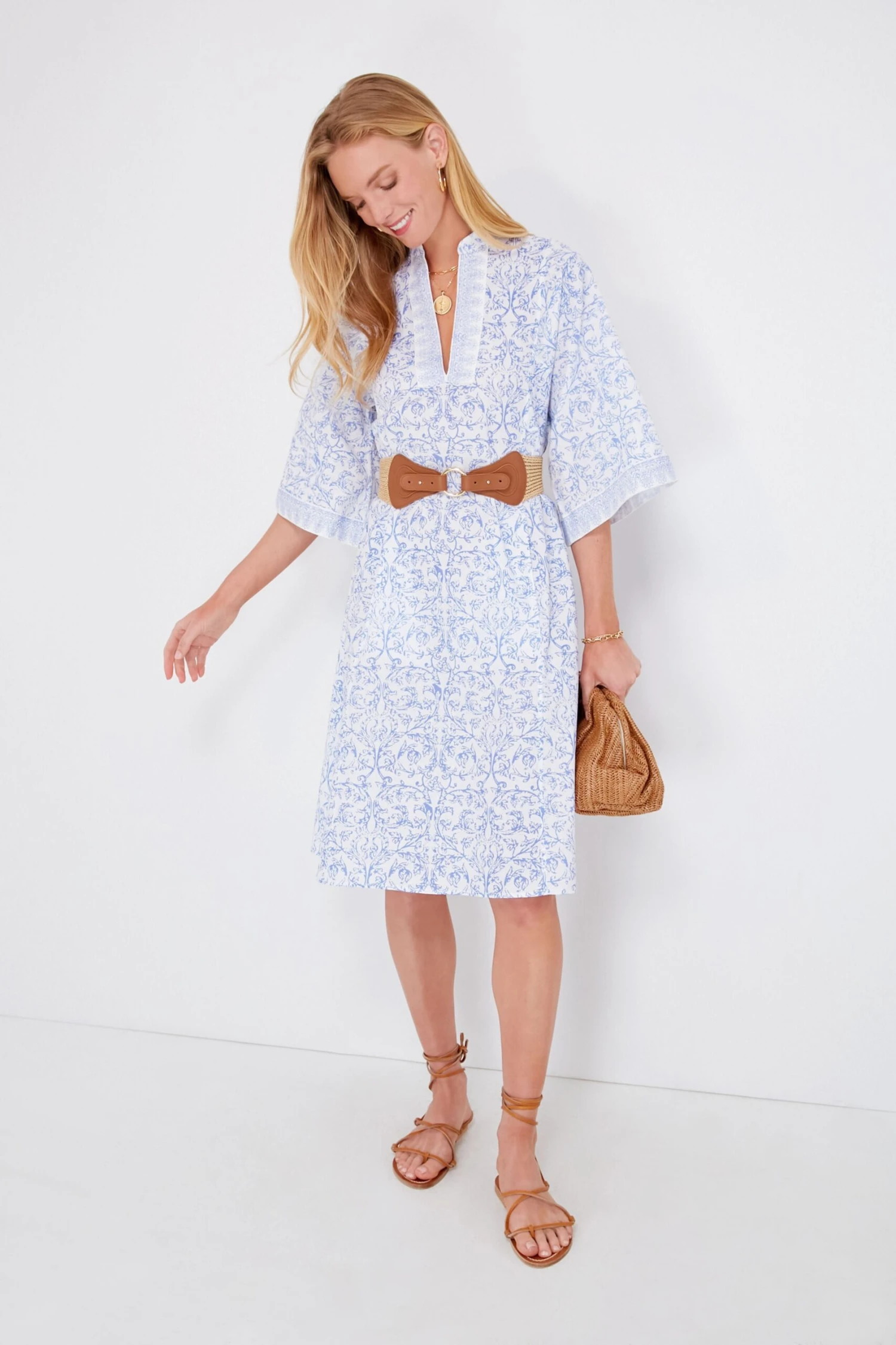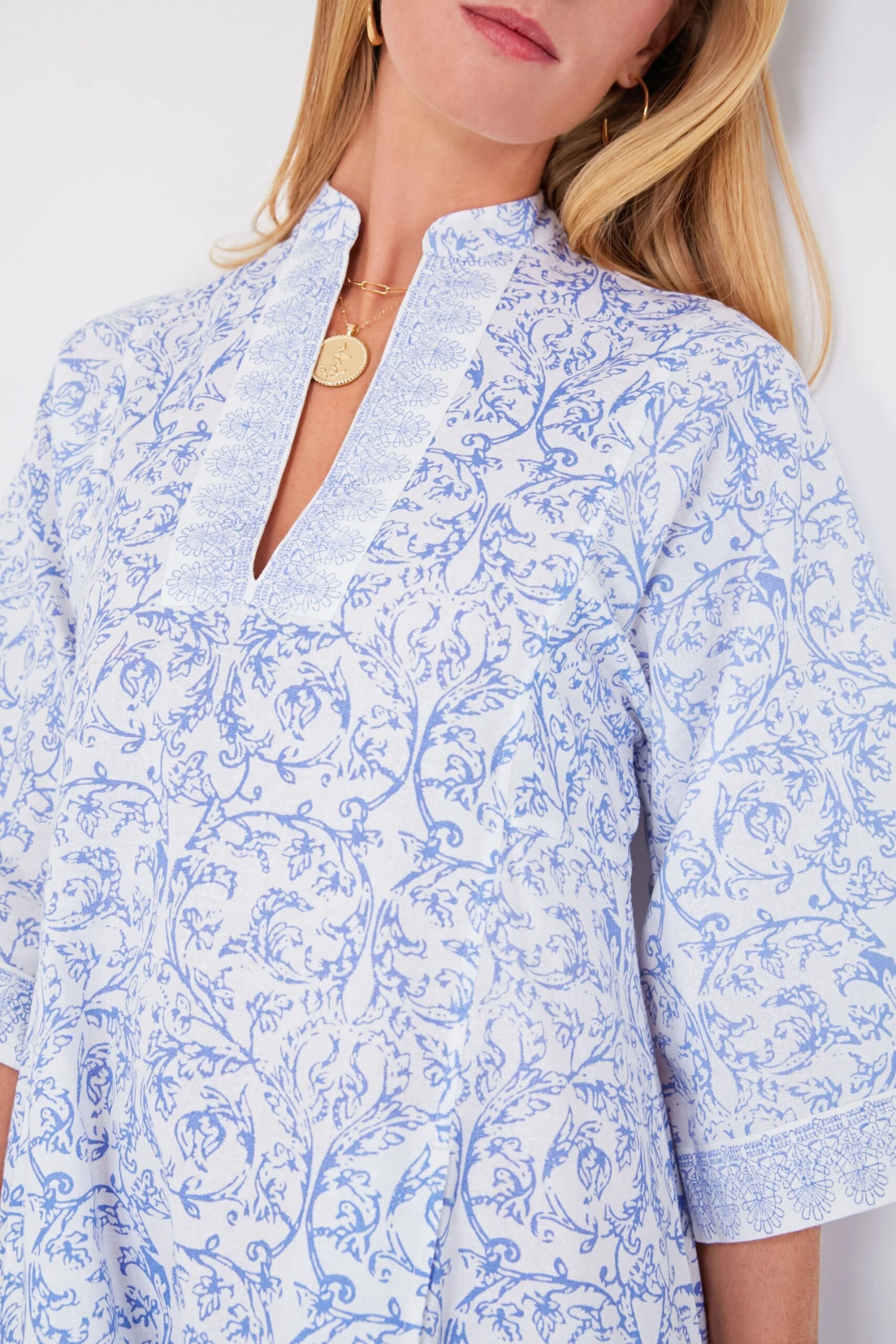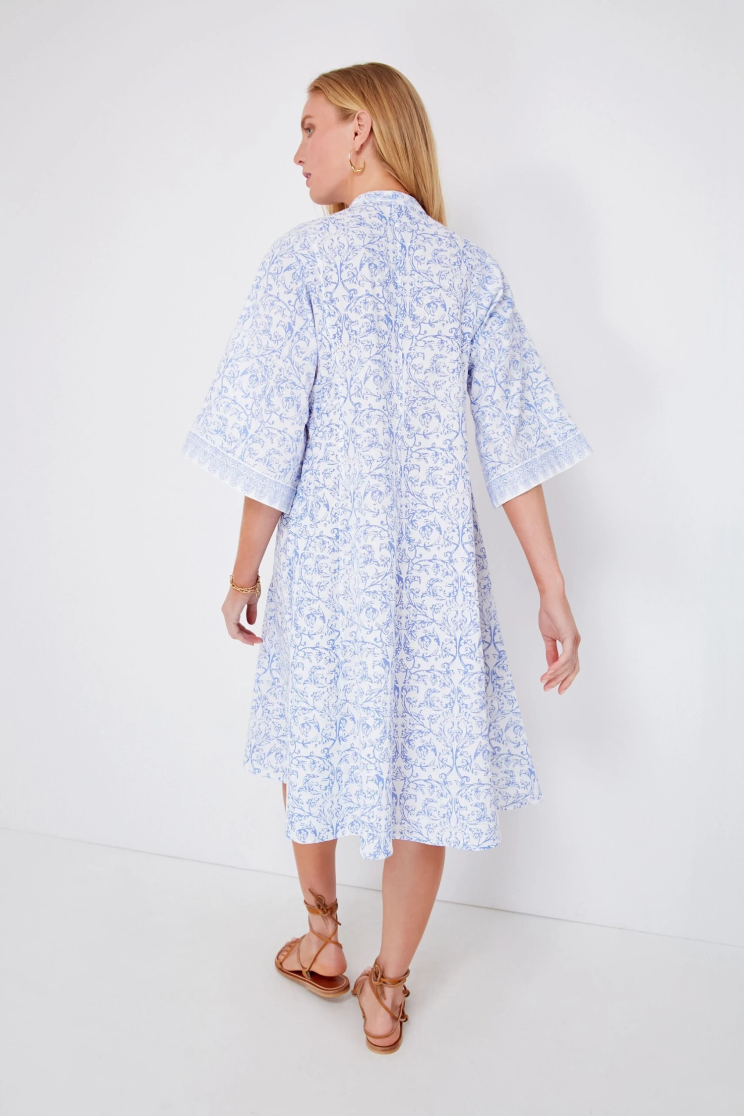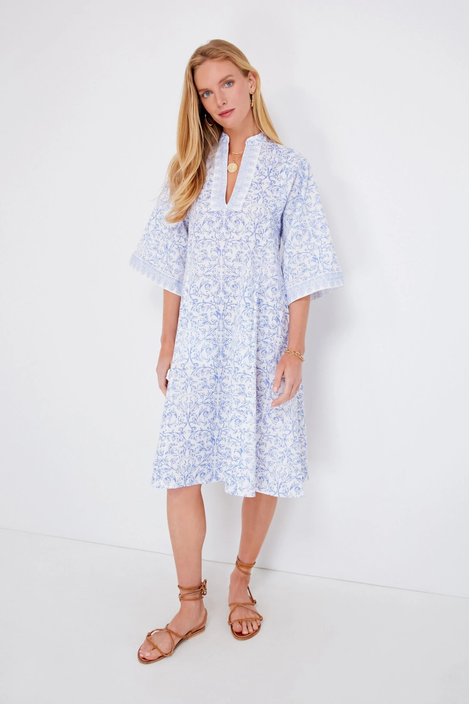 - Three-quarter length flared sleeves