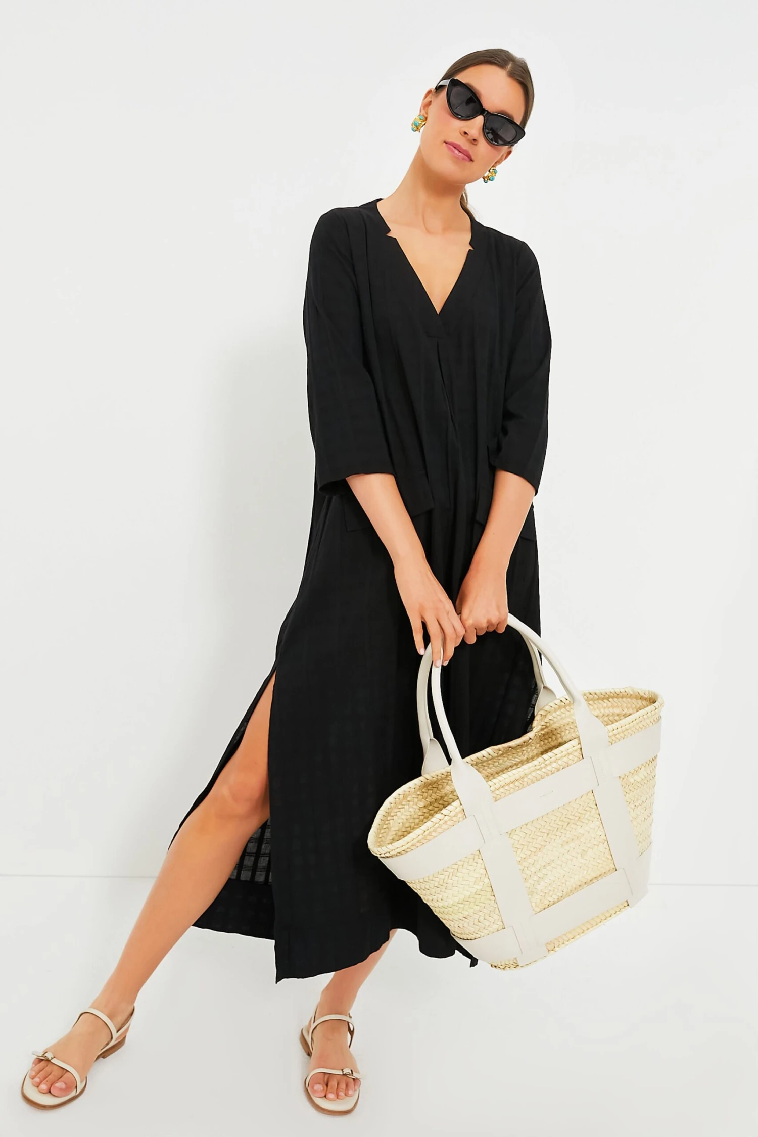 The Black Carolina Caftan is a warm-weather essential. This breezy, A-line silhouette features windowpane details, a V-neckline, slits at the hem, and faux pockets on the front. Add gold jewelry and espadrilles for a vacation-ready, bohemian vibe.