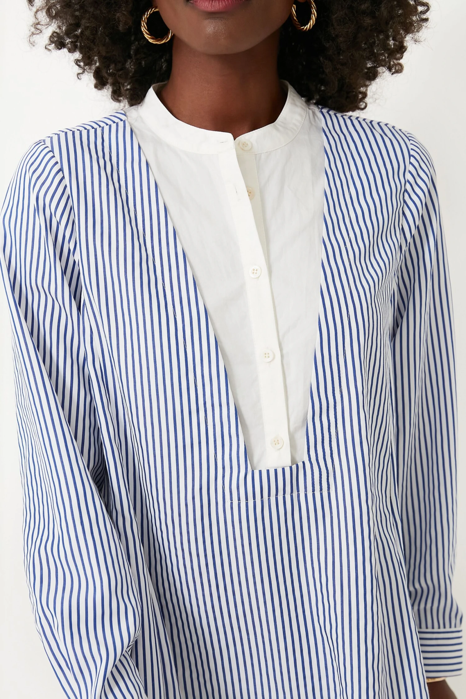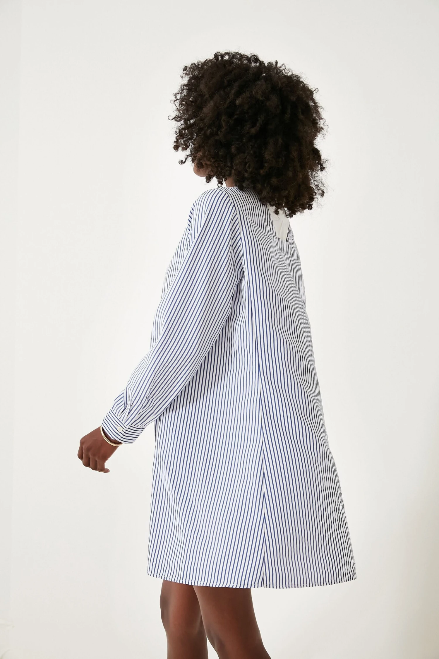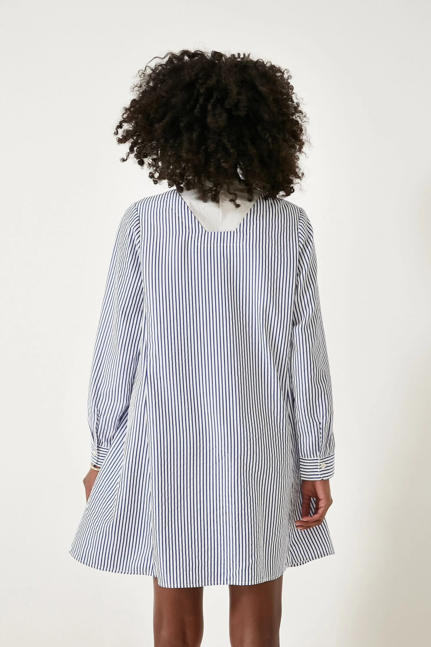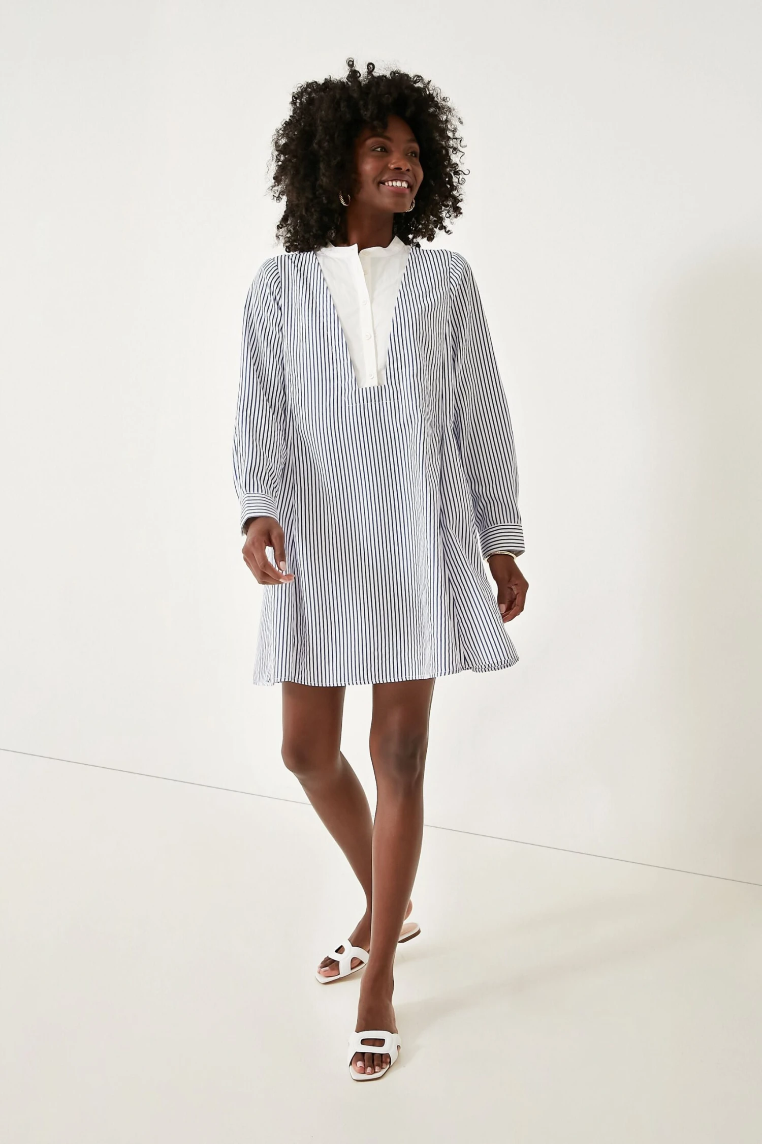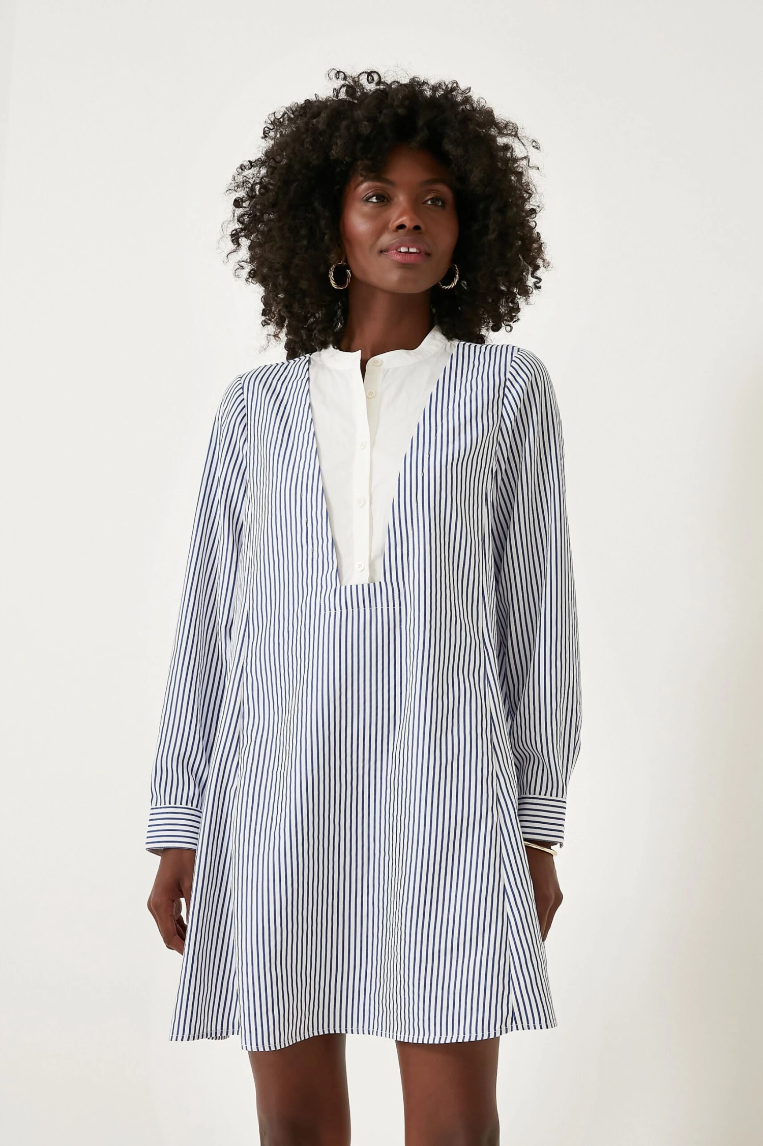 The traditional shirt dress reinvented, Lottie combines classic features with modern updates. A wardrobe hero thanks to its always on-trend blue and white stripes and contrast placket, this mini is the definition of desk to drinks styling. Add sandals for a day on the water or loafers for the office, this classic-with-a-twist silhouette does it all!