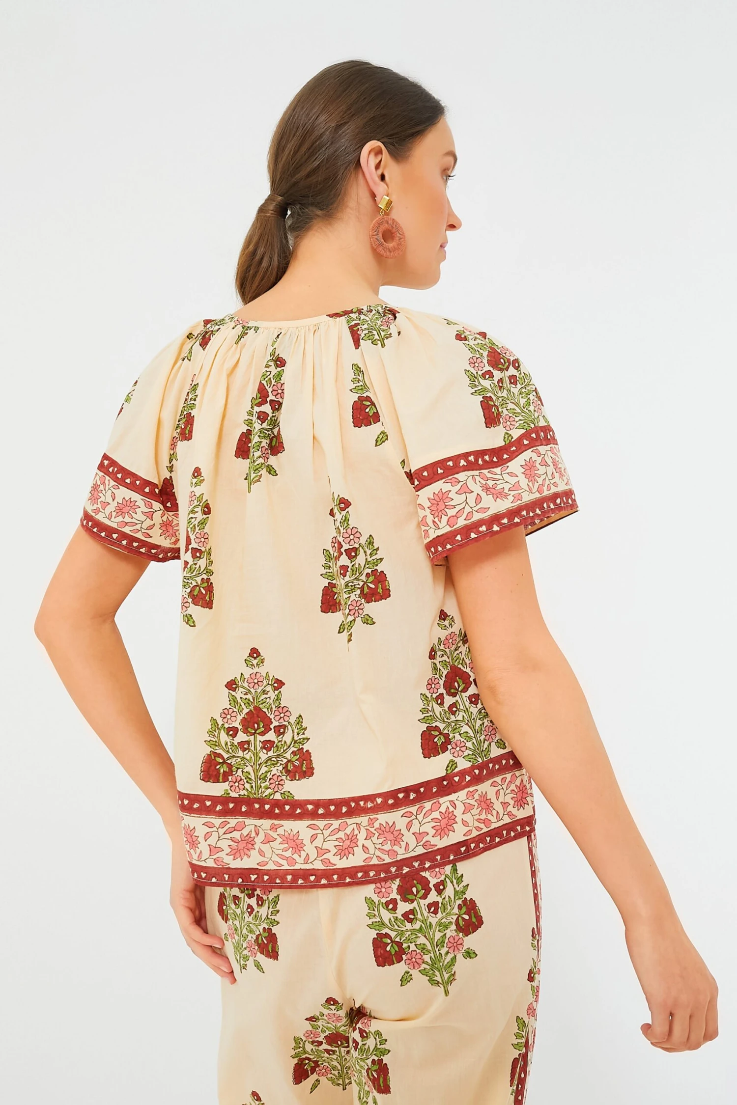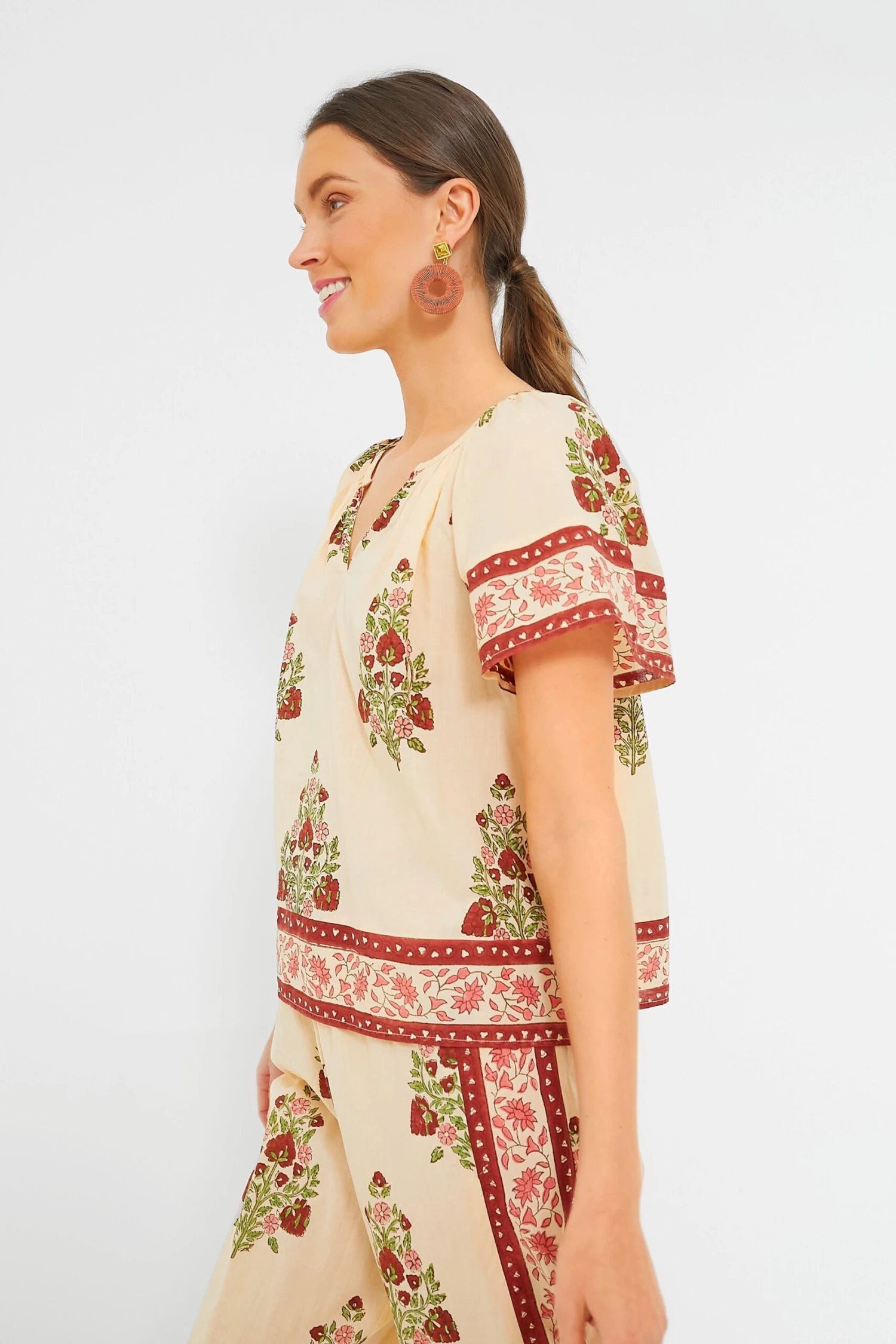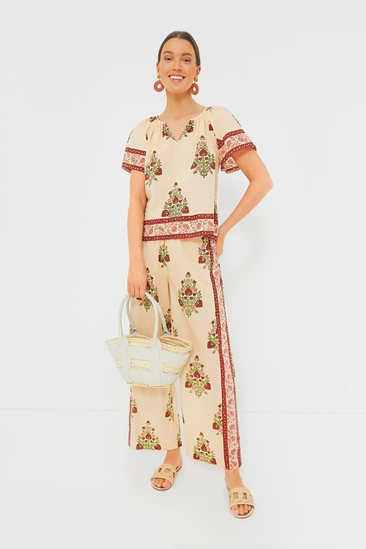Resort-wear gets an upgrade in the Blush Chandelier Elena Top. A relaxed silhouette with short raglan sleeves, a contrast bordered hem, and an eye-catching pattern, this top is nothing short of elegant. Made from a lightweight, slightly sheer fabric, this top works perfectly as a cover up from going from the beach to the bars- all you need is the Blush Chandelier Jolie Pant to complete the matching set!