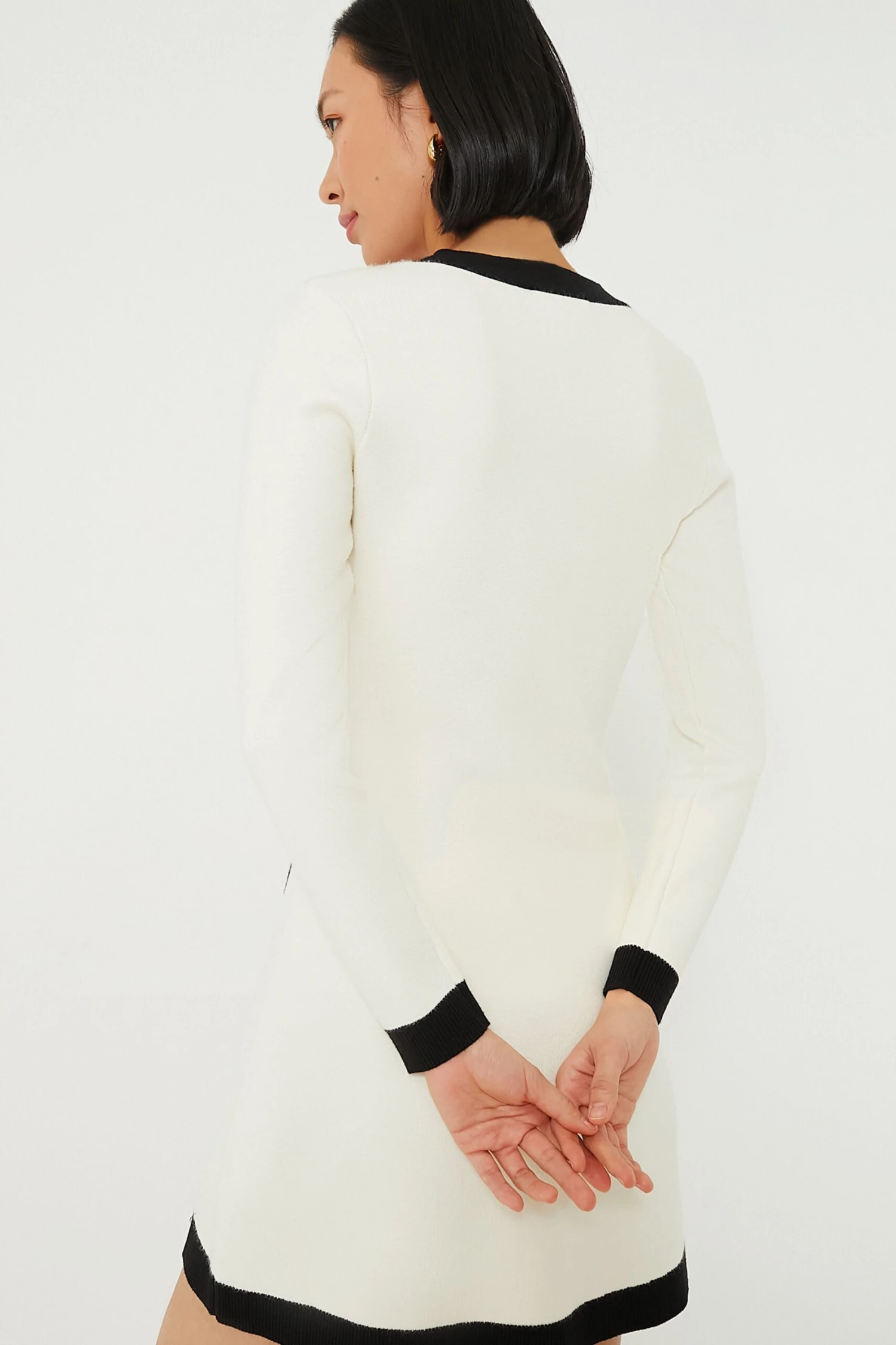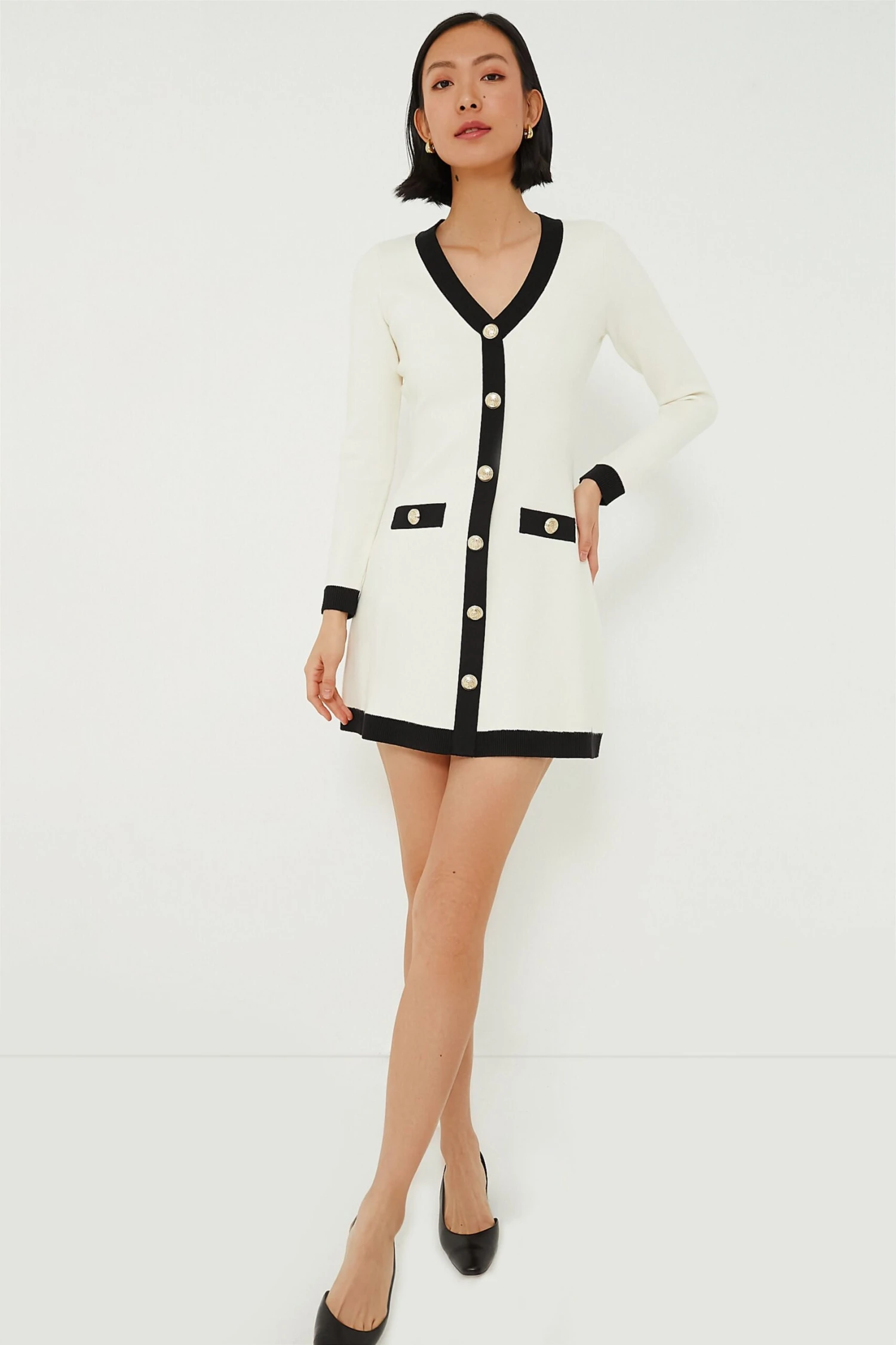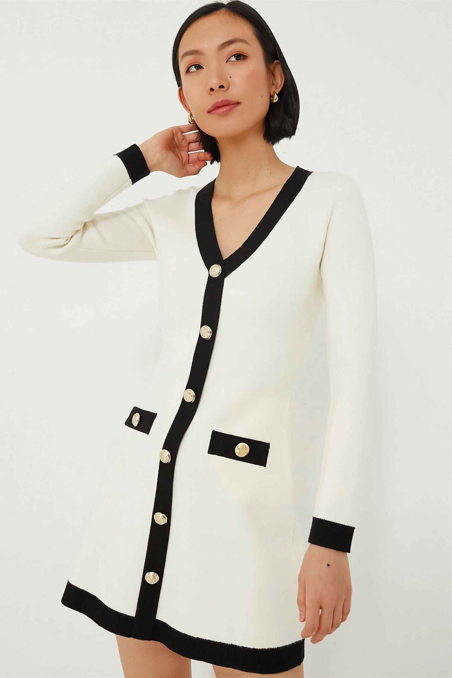 The Cream & Black Elizabeth Knit Dress absolutely screams Parisian-chic. This fit and flare mini features a v-neckline, long sleeves with contrasting hem and cuffs. The gold button detailing on the non-functional front placket and pockets adds a sophisticated touch to this classic silhouette. Opt for flats and gold accessories for a chic desk to drinks look that’s sure to impress.