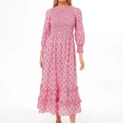 A Tuckernuck exclusive that is a favorite season after season, the Mogul Rose Isabel Dress brings a fresh, rosy pink print to a well-loved silhouette. A classic round neckline, flowing blouson sleeves, and a flattering smocked bodice ensure this midi is as comfortable as it is covetable. When styled with strappy sandals and raffia accessories, you have an ultra-chic look that works for vacations and celebrations, or wear it on a random Tuesday with white sneakers and sunnies.