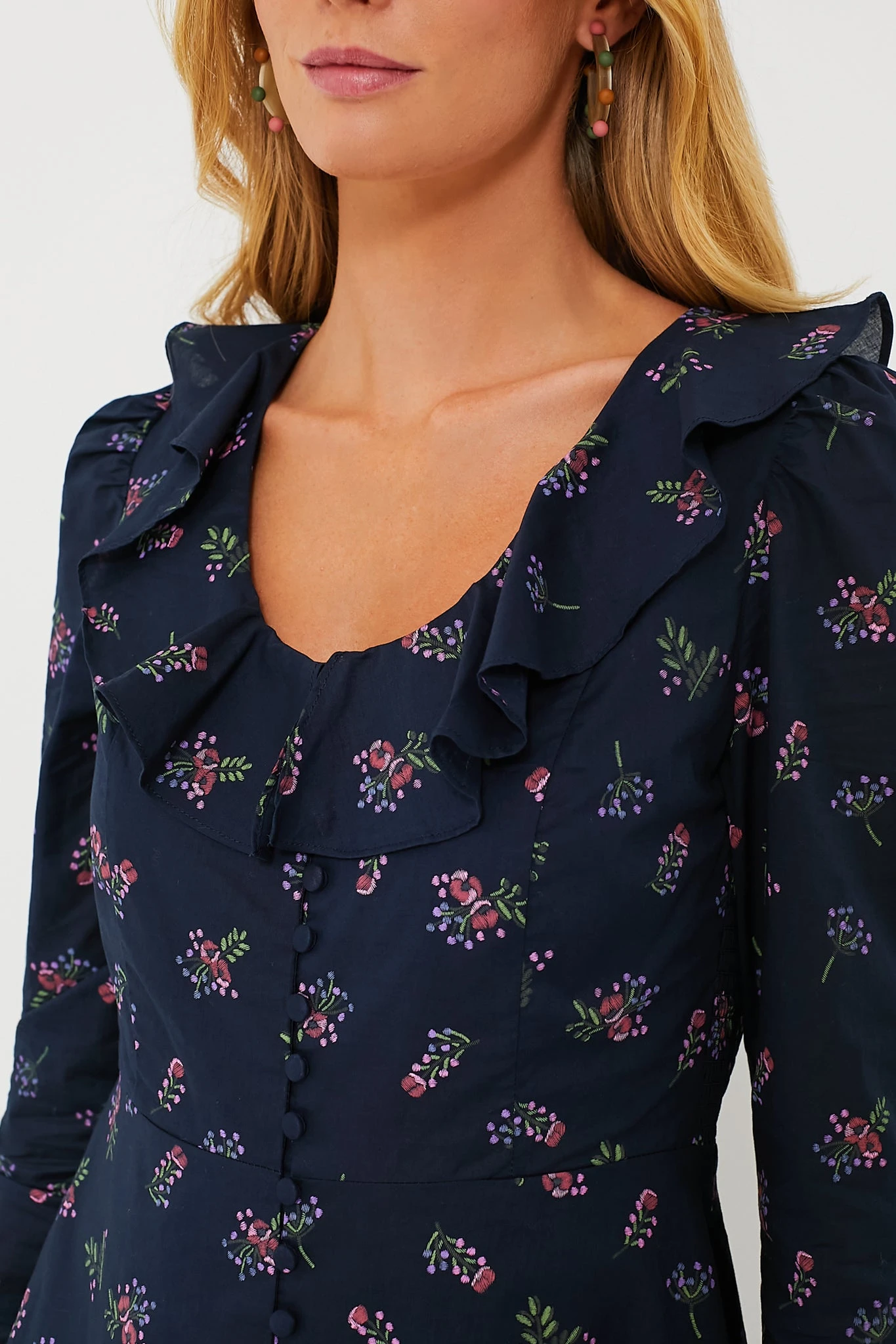 - Scoop neckline with ruffle trim