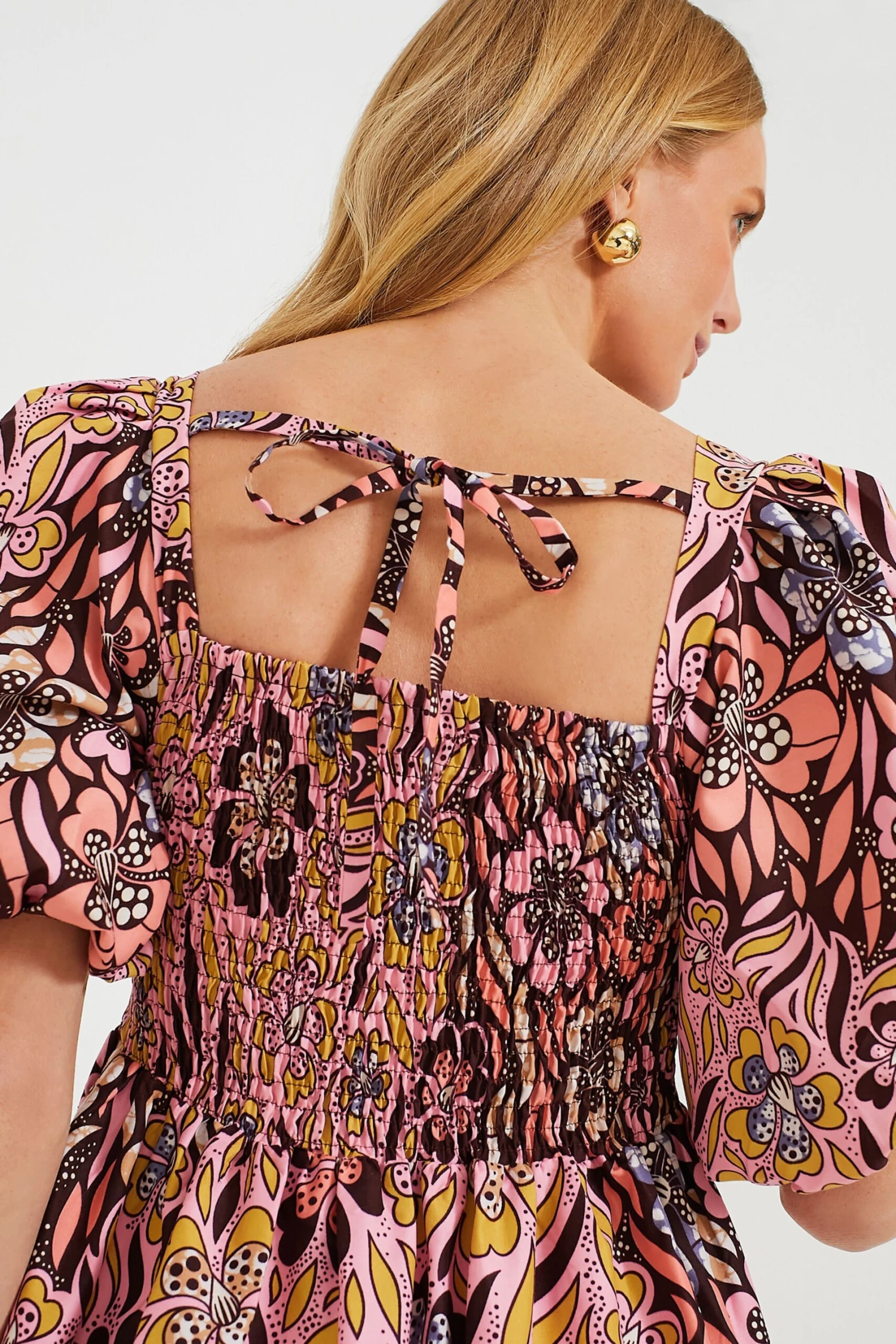 Bring the feeling and luxury of travel home with the Pink Lola Dress. It is a serious show stopper! Made in an eye-catching pattern, this dress features a square neckline, exaggerated puff sleeves and a smocked bodice. Simply pair with espadrilles or sandals and statement earrings for a look that will turn heads!