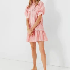 Garden parties, wine tastings, dinners alfresco—the Beatrix Dress handles it all with ease and grace. This mini is full of thoughtful details that make it so well loved; the pintucks on the bib, the perfectly puffed sleeves, the contrast piping throughout, the flirty peplum hem, it’s hard to choose our favorite feature. In a soft pink hue that is perfect for spring and summer, we are wearing this warm-weather stunner with flats, heels, sandals, or even fresh white sneakers for an ultra-chic look.