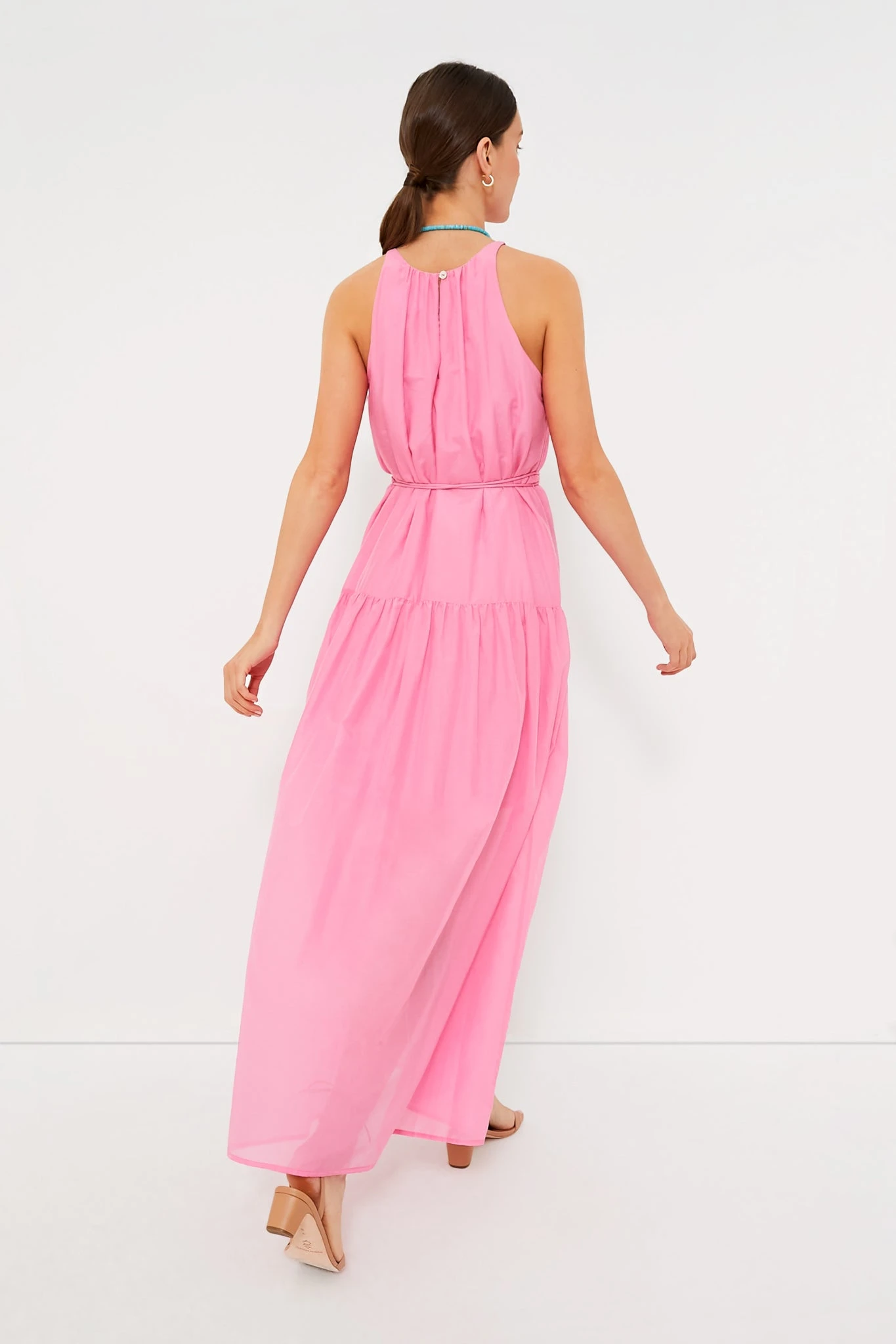 Indulge in timeless allure with the Rosa Giovanna Maxi- a blend of vintage charm and modern sophistication. The flattering silhouette boasts a classic drop-waist, a softly gathered scoop neck, and a removable criss-cross belt. The bubblegum color is playful and feminine- simply pair with sandals and statement earrings for a warm-weather ensemble!