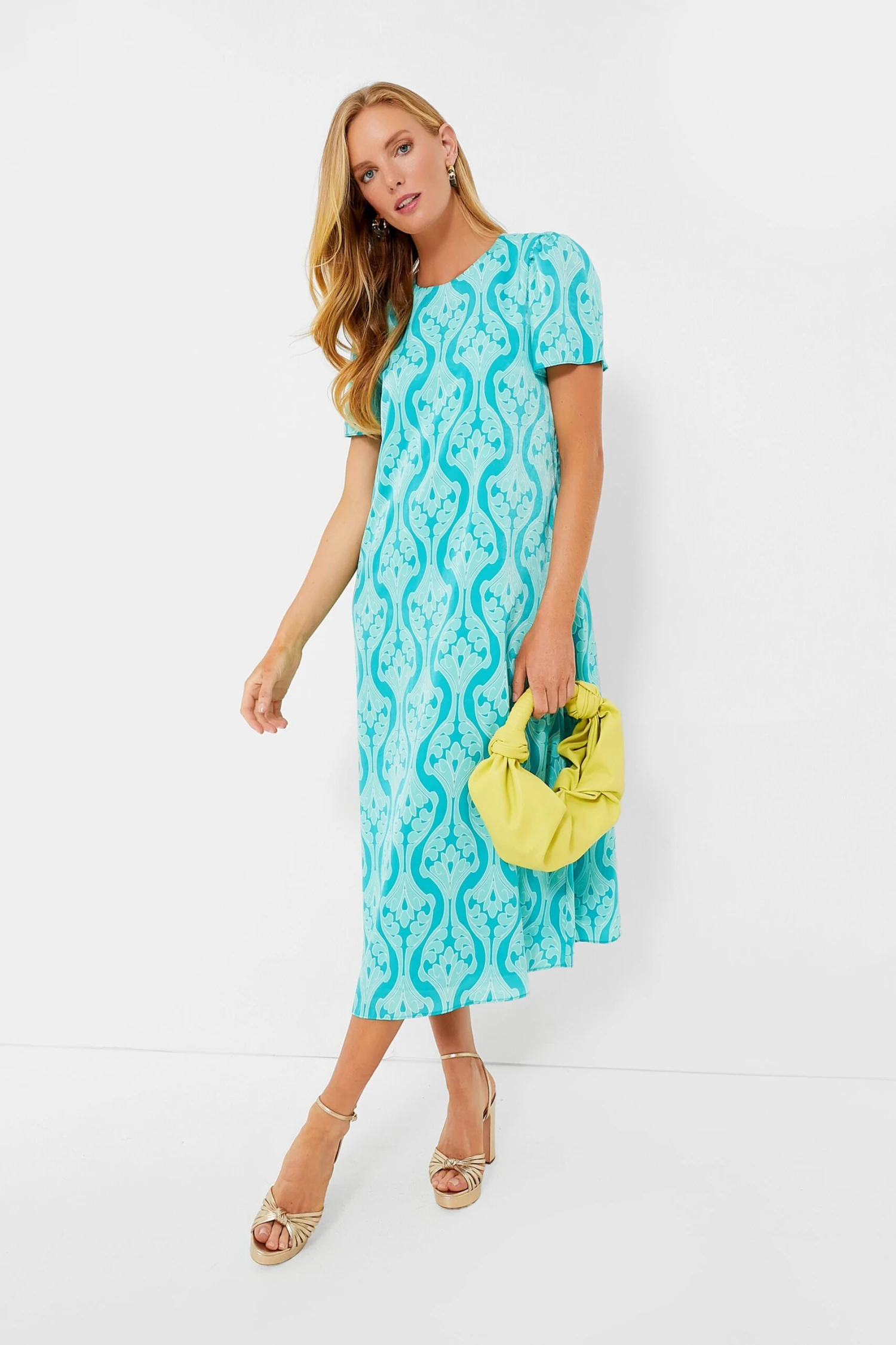 Add some brightness to your wardrobe with the Farah Dress! Featuring an eye-catching turquoise print in a silky fabric, this maxi is the easy choice for your next event. Pair with gold heels and a bright clutch for a colorfully chic ensemble sure to turn heads.
