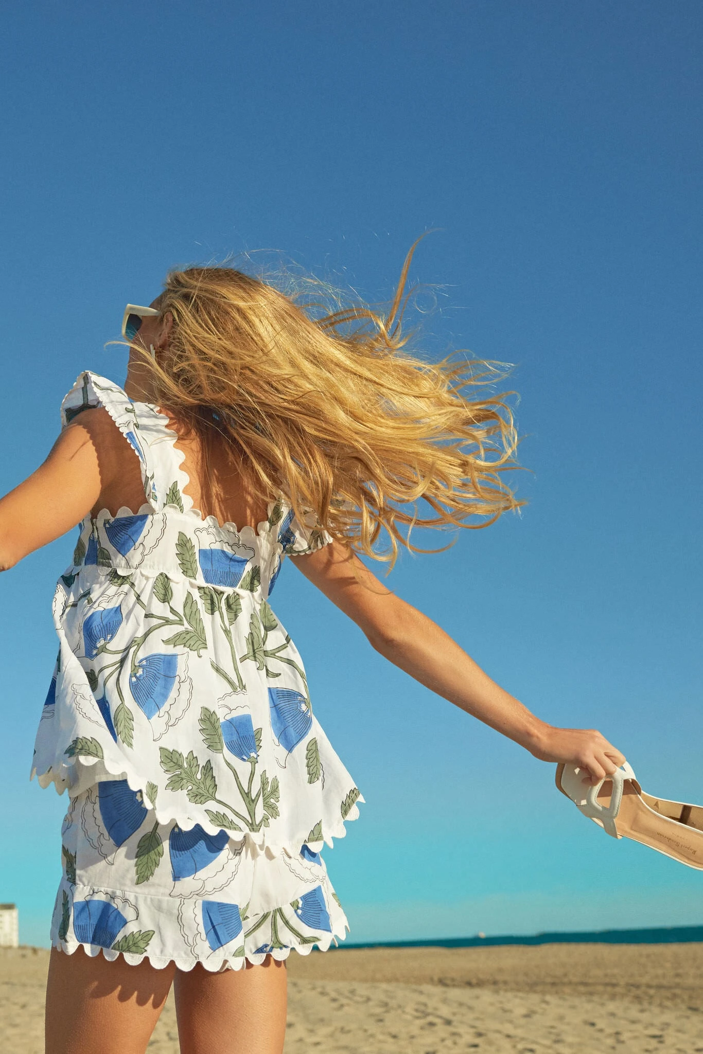 Other half of our new favorite set, meet the White and Klein Blue High Waist Shorts. Cut from organic cotton with bellflower blockprint, this style features a high waist finished with scallop trim. Perfect for springtime days, pair it with the matching White and Klein Blue Baby Doll Top for a fun alternative to a sundress or wear it with a plain white vest for a minimal yet chic look.