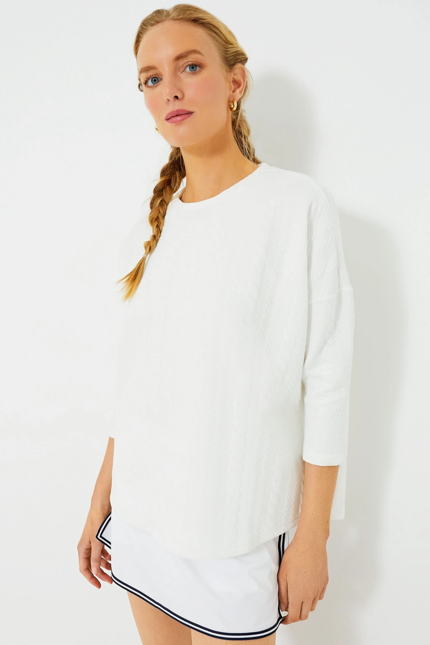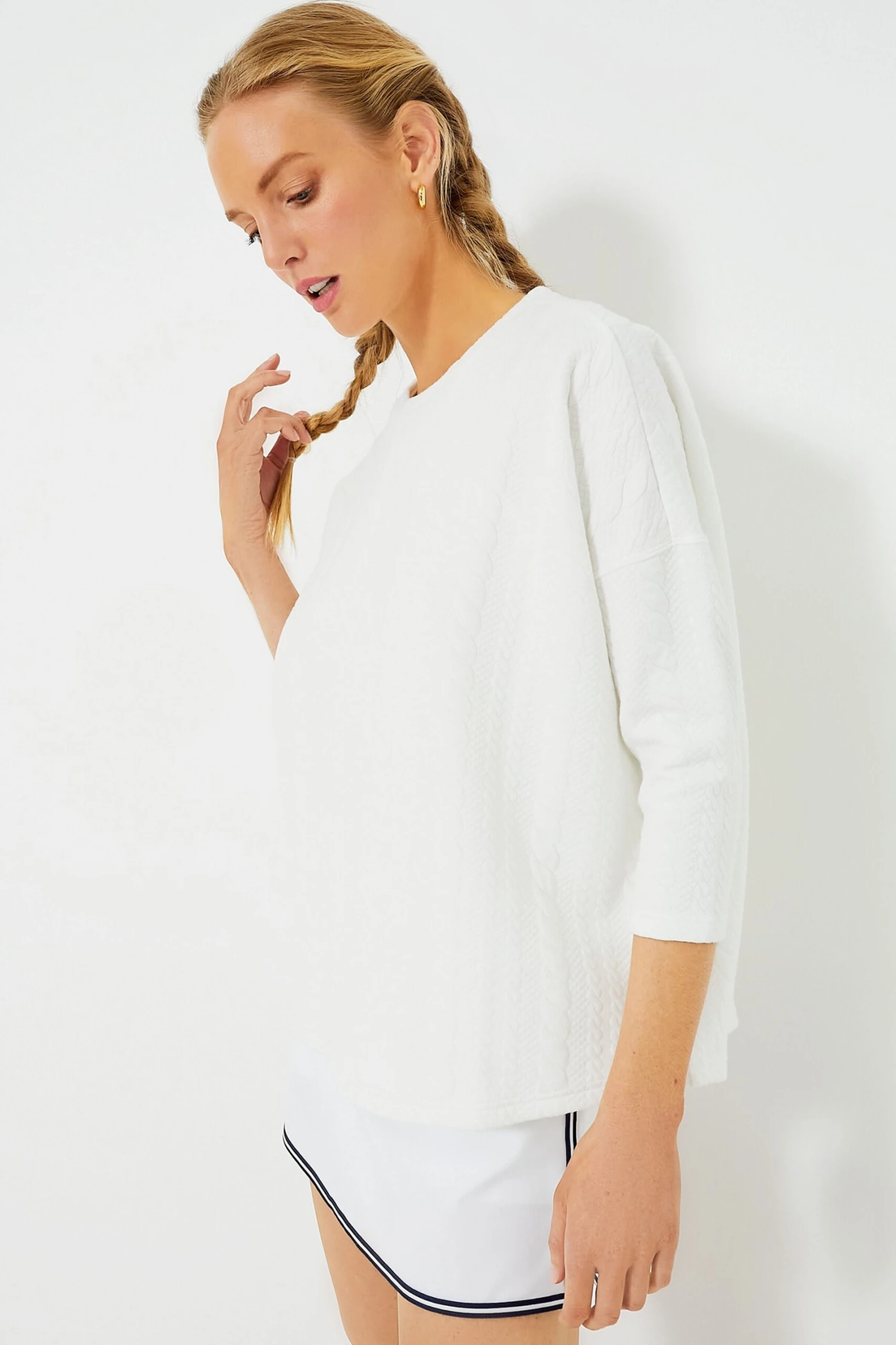 The perfect outfit topper to take you from a warm-up run to a coffee run, the White Cable Ally Swing Sweatshirtย was designed with mobility in mind. This soft-to-touch, best-selling style features classic cable quilting, slimming, fitted sleeves, and a swing shape body that pairs perfectly with leggings, shorts, and performance skirts for an all-activities piece.