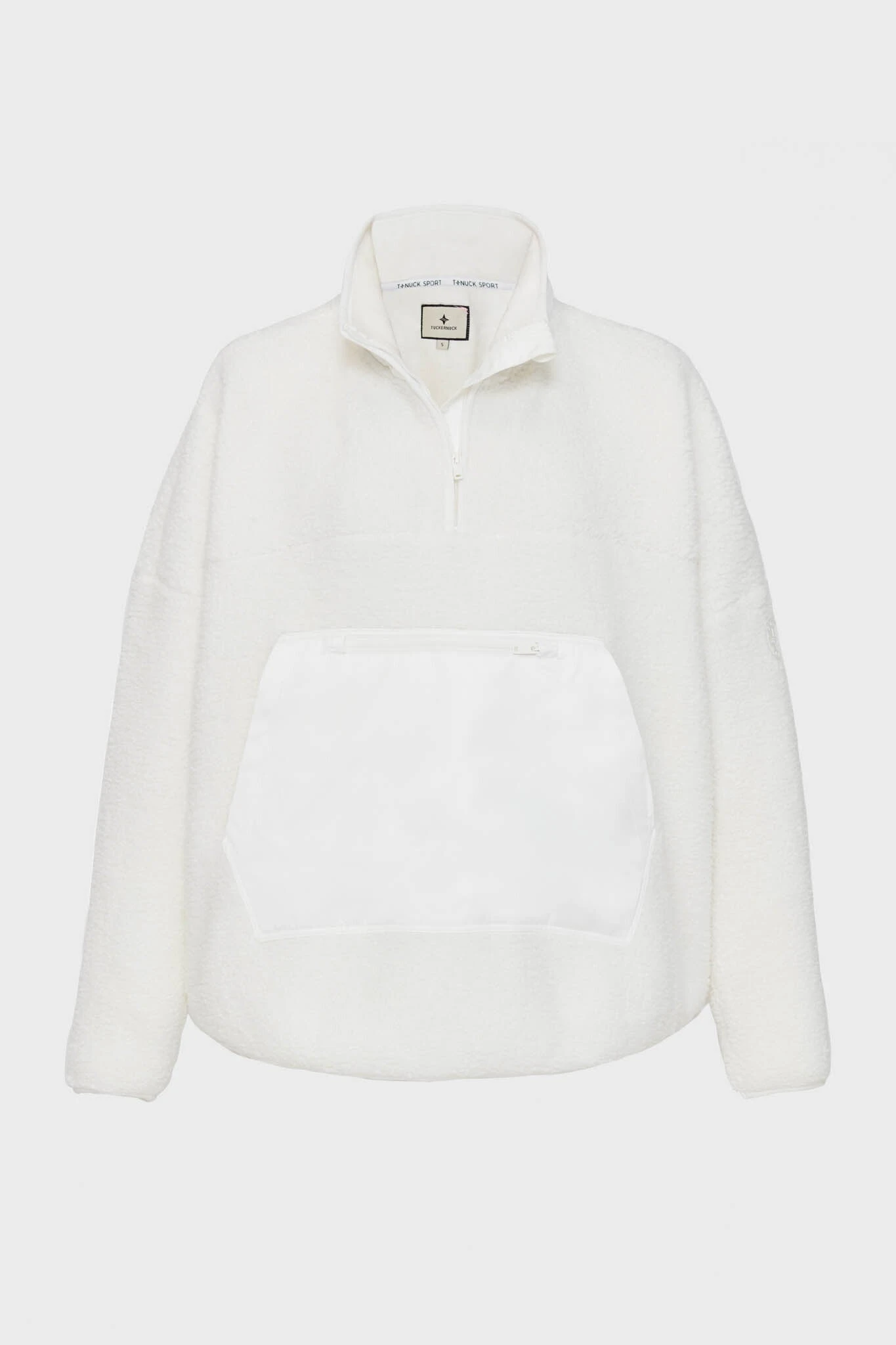 Super soft teddy fleece fabric meets functional style for the ultimate throw on and go number. The White Fleece Cady Quarter Zip is designed with a half zip and wind flap for added protection against cold weather and an additional patch pocket on top of a kangaroo pocket that makes for easy hands free hiking and adventures.